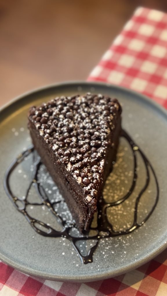 Terminamos la velada con el Choco Choco. Una irresistible tarta cremosa de chocolate que hará las delicias de los más golosos y que nos hizo rebañar el plato hasta la última cucharada.