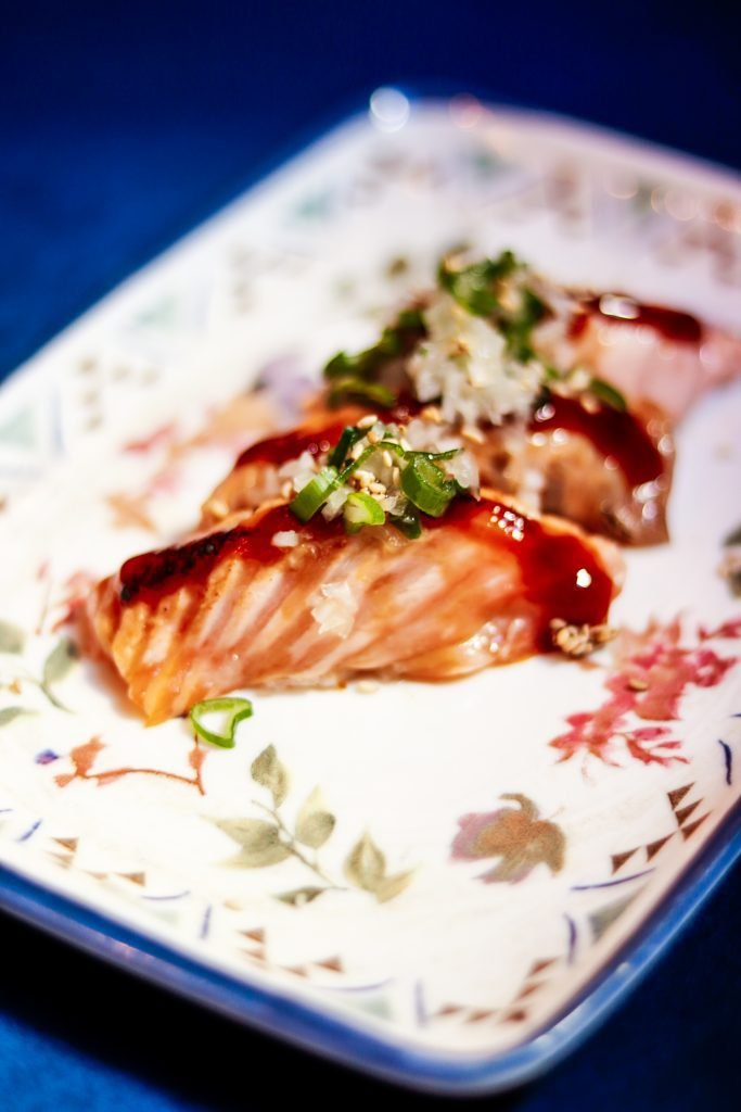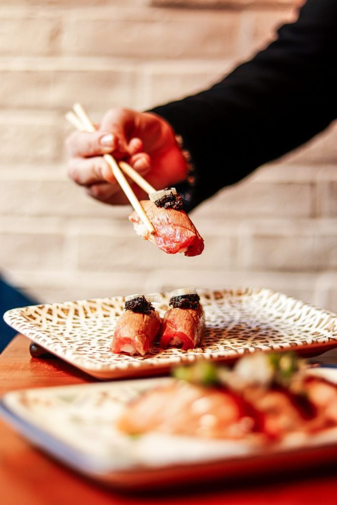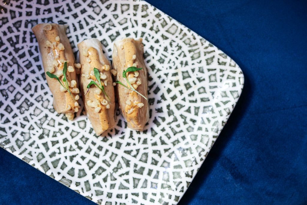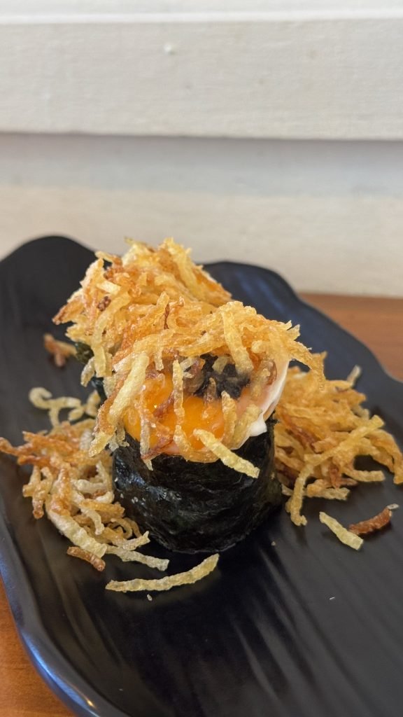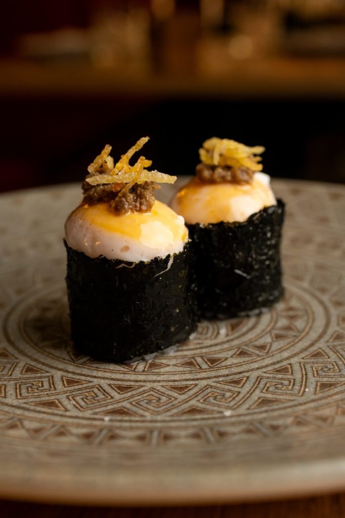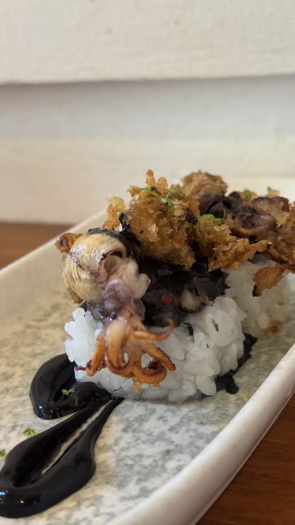 Nuestra visita a Ronda 14 comenzamos con sus famosos gunkan de huevo trufado. Una formidable explosión de sabor en boca, que nos condujo al riquísimo California roll de centollo que compartió protagonismo con el original roll de chopito rebozado con tinta de calamar. Continuamos con unas exquisitas gyozas de langostino y verdura y unos irresistibles langostinos al panko que resultan ideales para compartir, al igual que el exquisito pulpo parrillero con patatines.